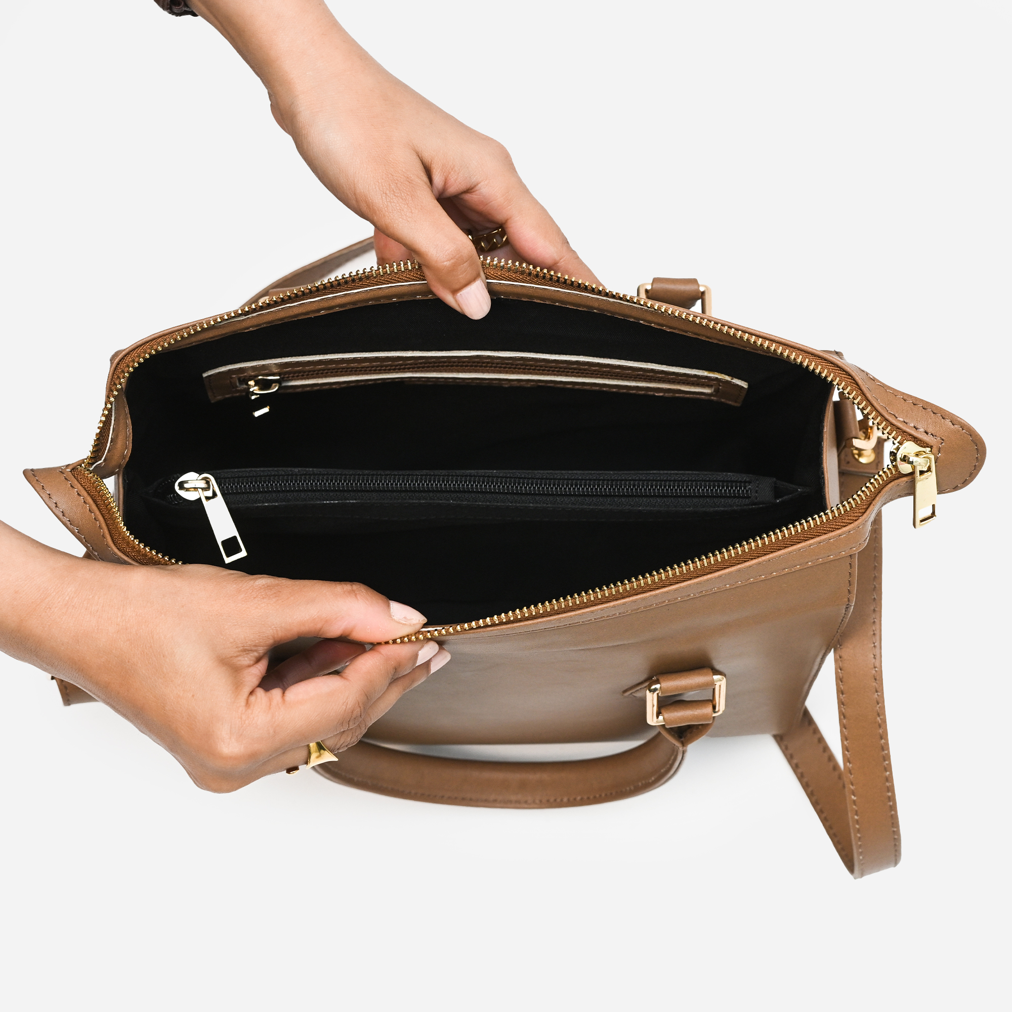 Marcella is a classic leather bag designed to complement the modern woman’s busy lifestyle. Whether you’re heading to the boardroom or meeting friends for dinner, this sleek, structured shoulder bag has you covered for your 9-to-5 look and beyond. With its spacious interior and versatile carry options, Marcella effortlessly blends functionality with refined style. Available in two colours: black and latte beige.